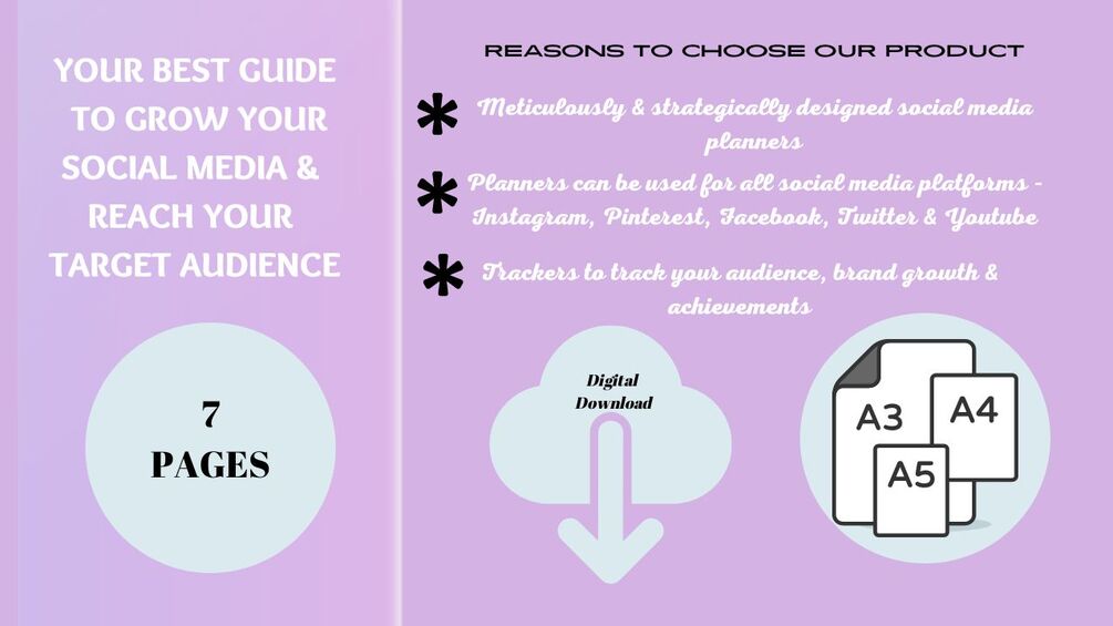 You will receive a high-resolution PDF file A4 size with 7 Amazing Social Media Planner Sheets that Can be Used Over & Over Again!