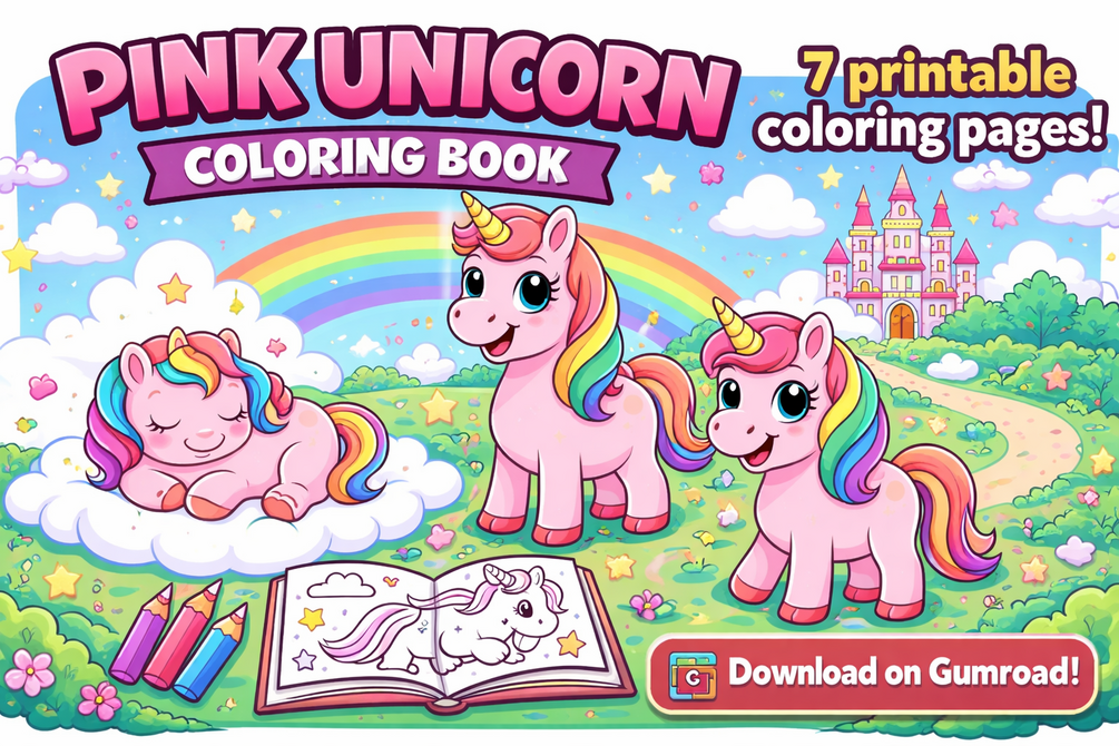 Pink Unicorn Coloring Book for Kids (Printable PDF)